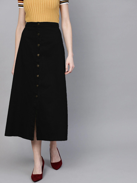 Women Solid A-line Black Skirt