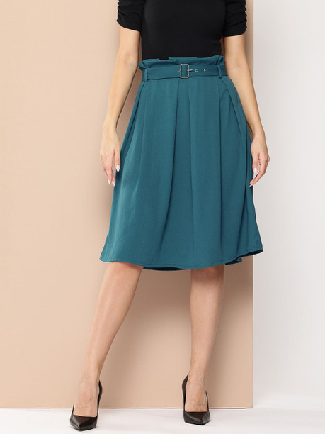 Women Solid A-line Green Skirt