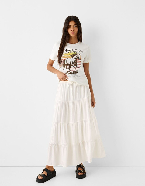 Women Solid Gathered White Skirt