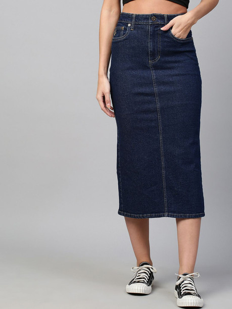 Women Solid Pencil Blue Skirt