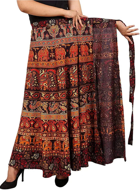 Women Printed Wrap Around Brown, Multicolor Skirt