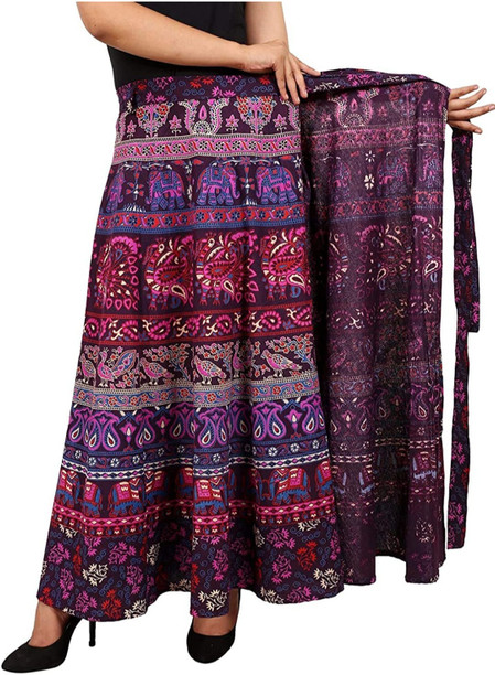 Women Printed Wrap Around Purple, Multicolor Skirt
