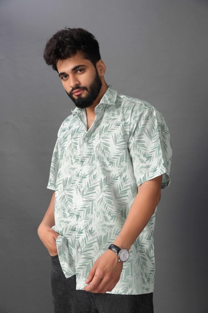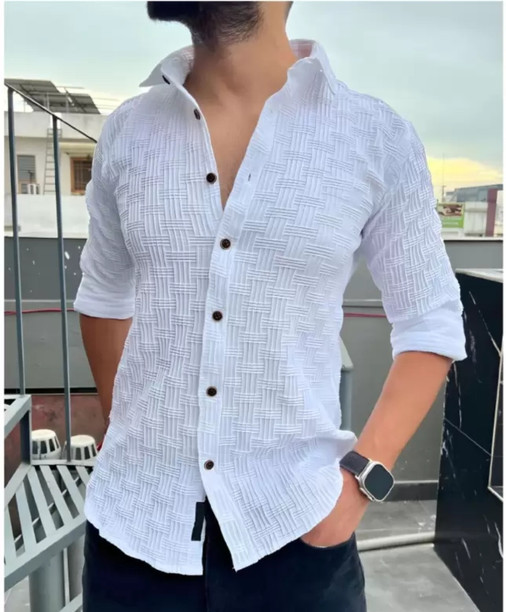 Men Comfort Fit Fit Self Design Spread Collar Casual Sh...