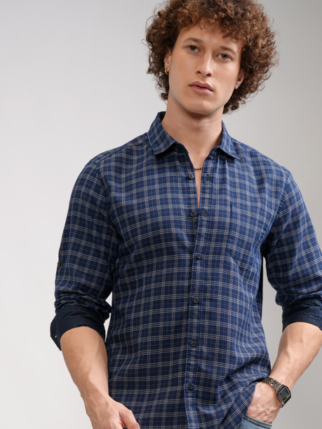 Men Regular Fit Checkered Spread Collar Casual Shirt