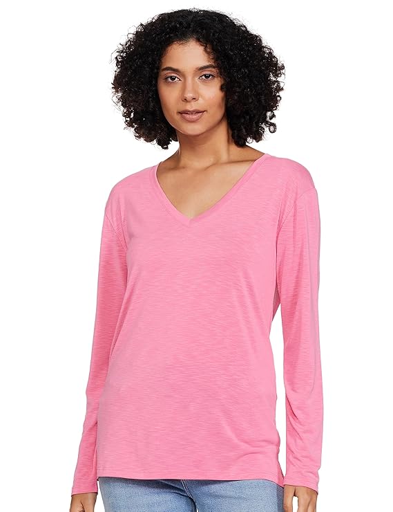 Women's Solid Modal Blend V-Neck Regular Fit Long Sleeve