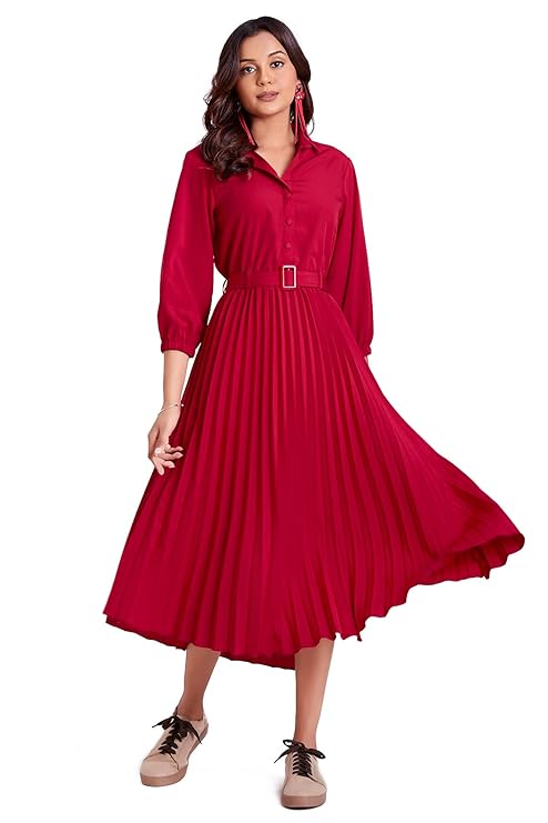 Pink Half Sleeve V-Neck Pink Wrap Dress
