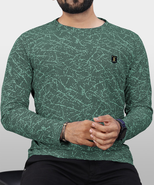 Men Printed Round Neck Polyester Light Green T-Shirt