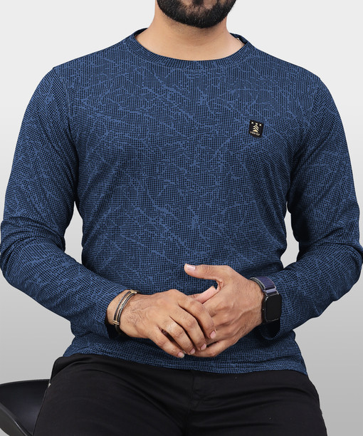 Men Printed Round Neck Polyester Blue T-Shirt