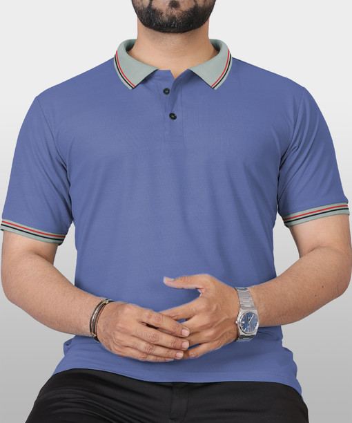 Men Solid Polo Neck Polyester Blue T-Shirt