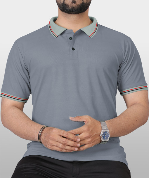 Men Solid Polo Neck Polyester Grey T-Shirt