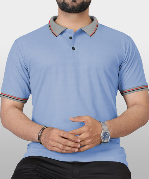 Men Solid Polo Neck Polyester Light Blue T-Shirt