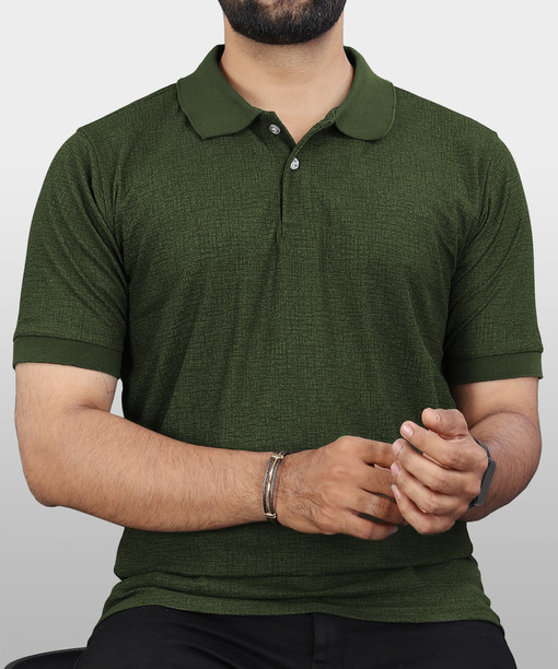 Men Printed Polo Neck Polyester Green T-Shirt