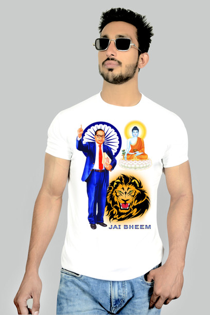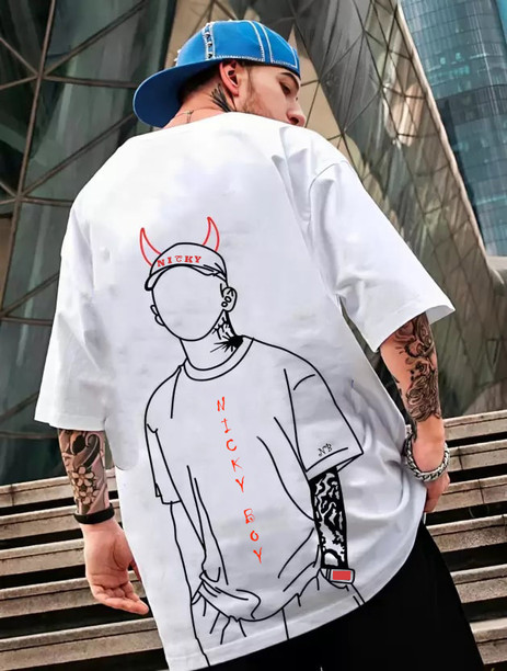 Men Graphic Print Round Neck Cotton Blend White T-Shirt