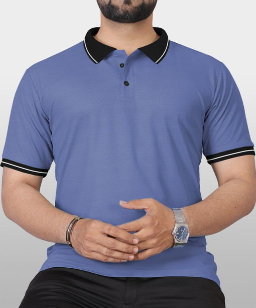 Men Solid Polo Neck Polyester Blue T-Shirt