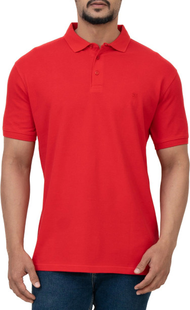 Men Solid Polo Neck Polyester Red T-Shirt