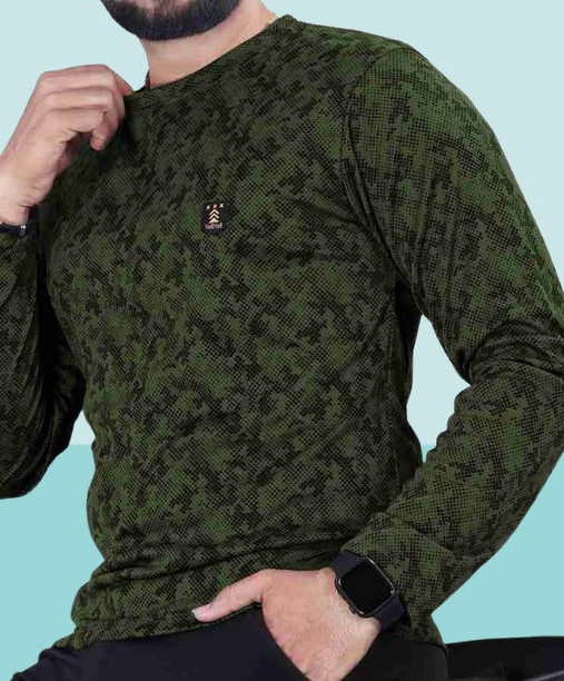 Men Printed Round Neck Cotton Blend Dark Green T-Shirt