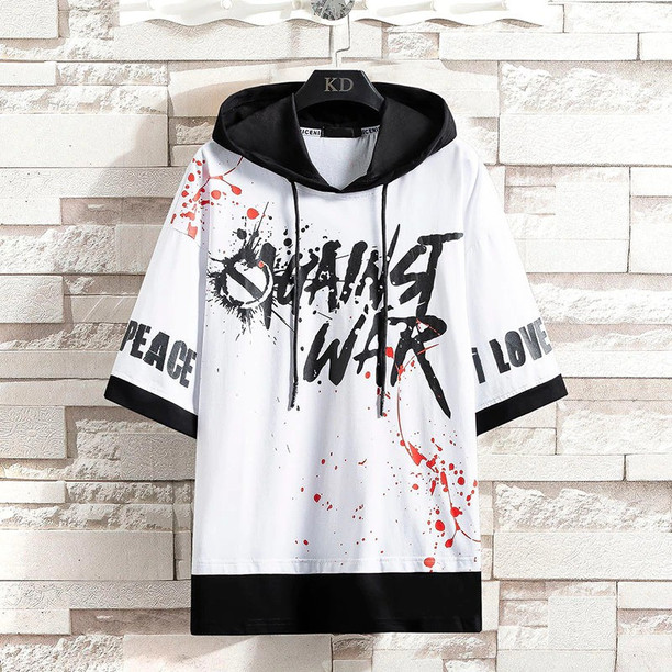 Men Typography Hooded Neck Cotton Blend White T-Shirt