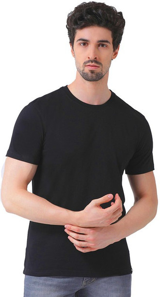 Men Solid Round Neck Pure Cotton Black T-Shirt
