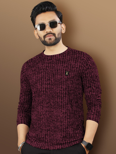 Men Printed Round Neck Polyester Maroon T-Shirt
