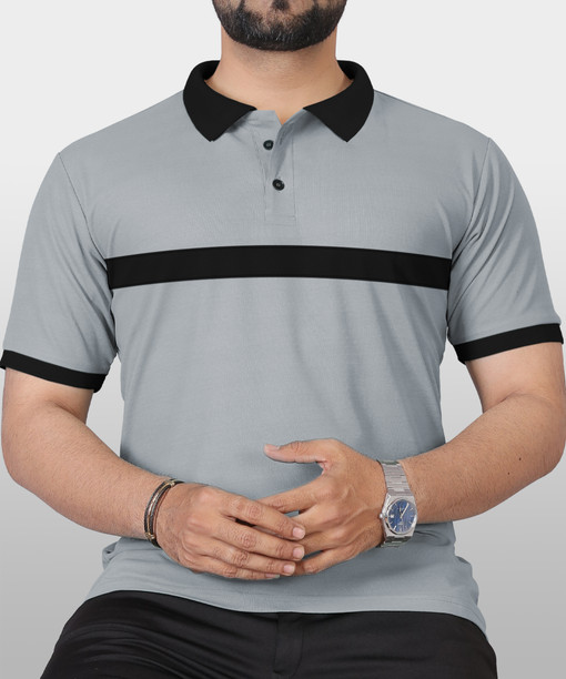 Men Colorblock Polo Neck Polyester Grey T-Shirt