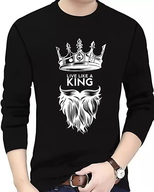 Men Printed Round Neck Polyester White T-Shirt