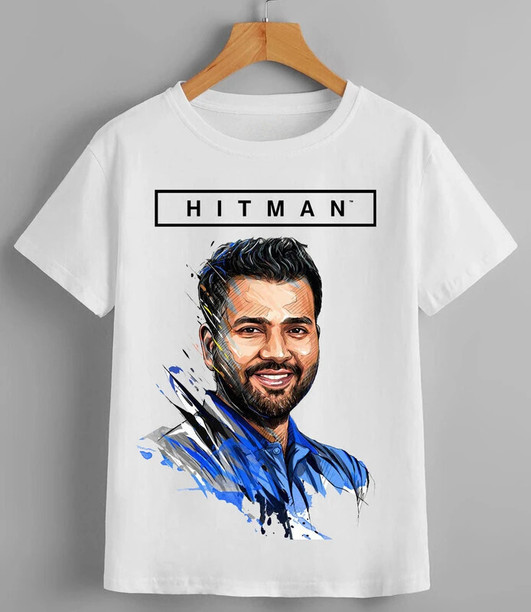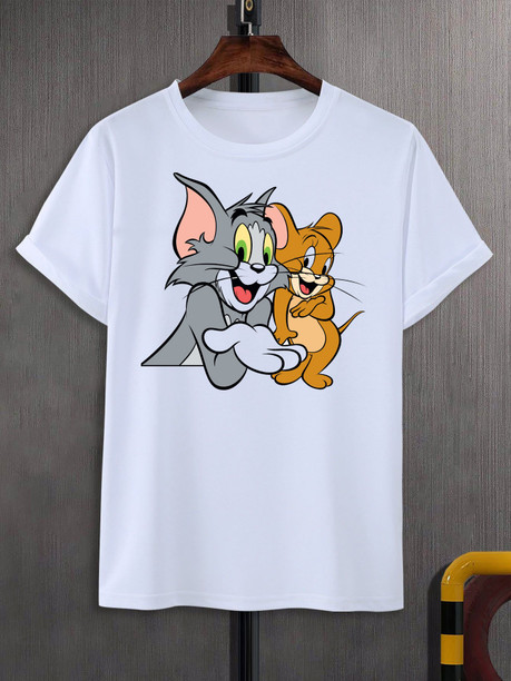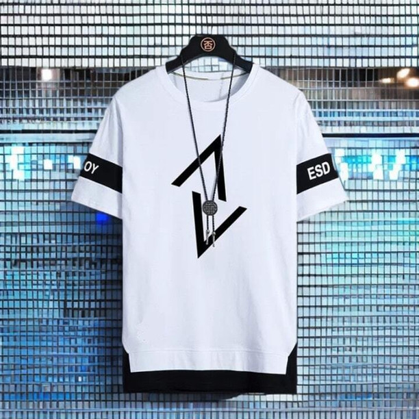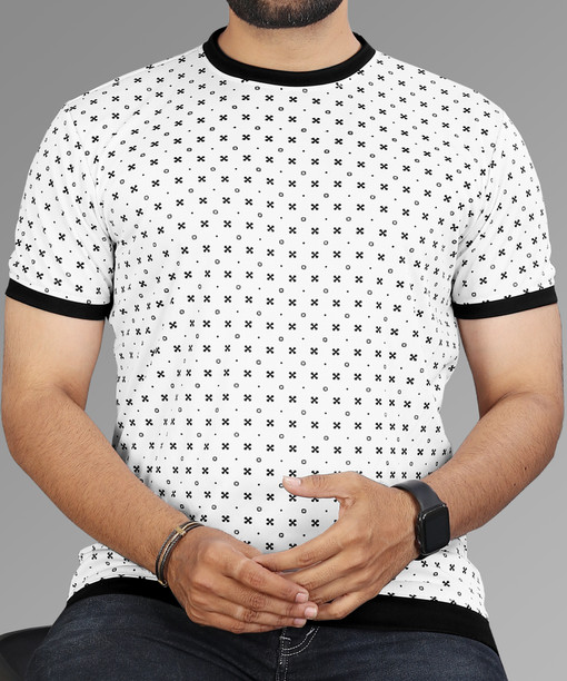 Men Printed Round Neck Polyester White, Black T-Shirt