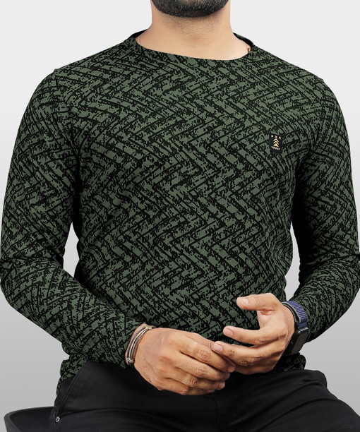 Men Printed Round Neck Polyester Dark Green T-Shirt