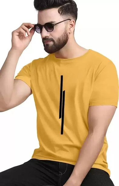 Men Printed Round Neck Polyester Yellow T-Shirt