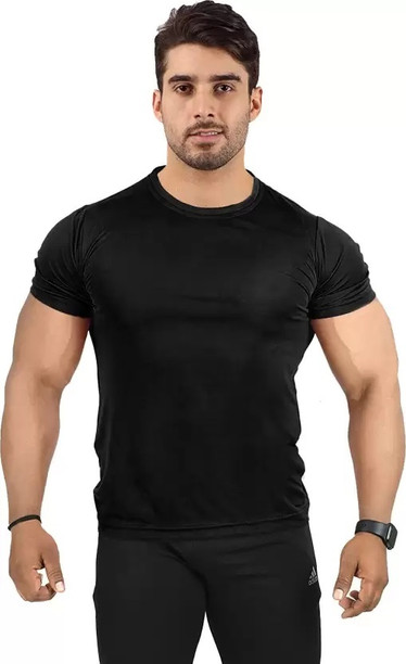 Solid Men Round Neck White T-Shirt Men Solid Round Neck...