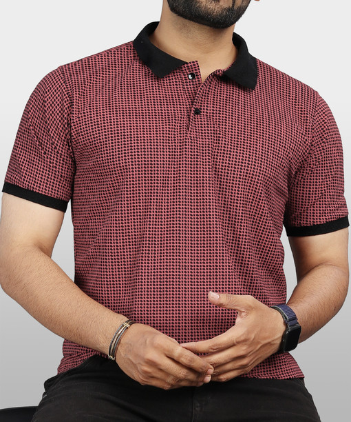 Men Printed Polo Neck Polyester Pink T-Shirt
