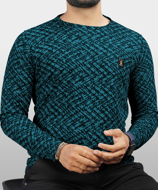 Men Printed Round Neck Polyester Dark Blue T-Shirt