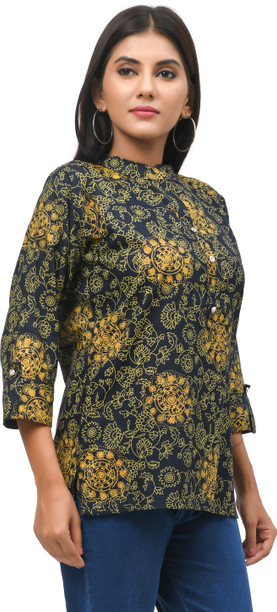Women Printed Round Neck Pure Cotton Blue T-Shirt