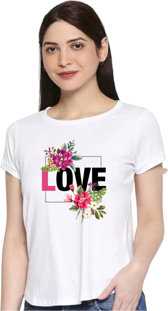Women Printed Round Neck Pure Cotton White T-Shirt
