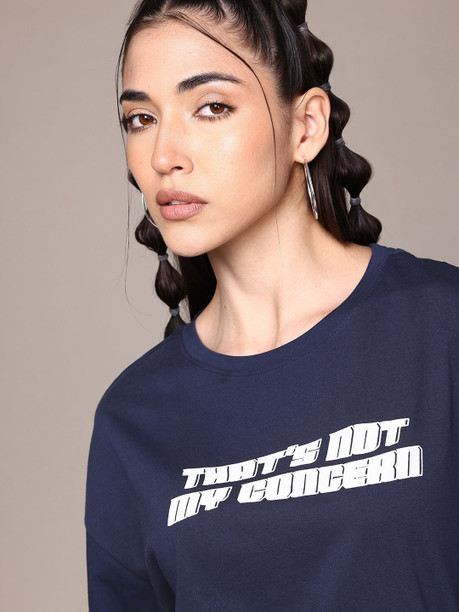 Women Self Design Round Neck Cotton Blend Blue T-Shirt