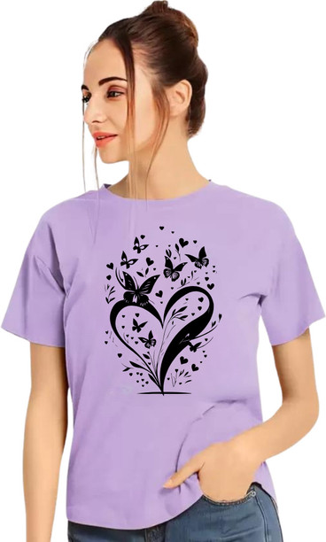 Women Printed Round Neck Polycotton Purple T-Shirt