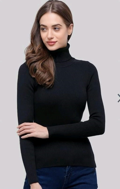 Women Self Design High Neck Cotton Blend Black T-Shirt